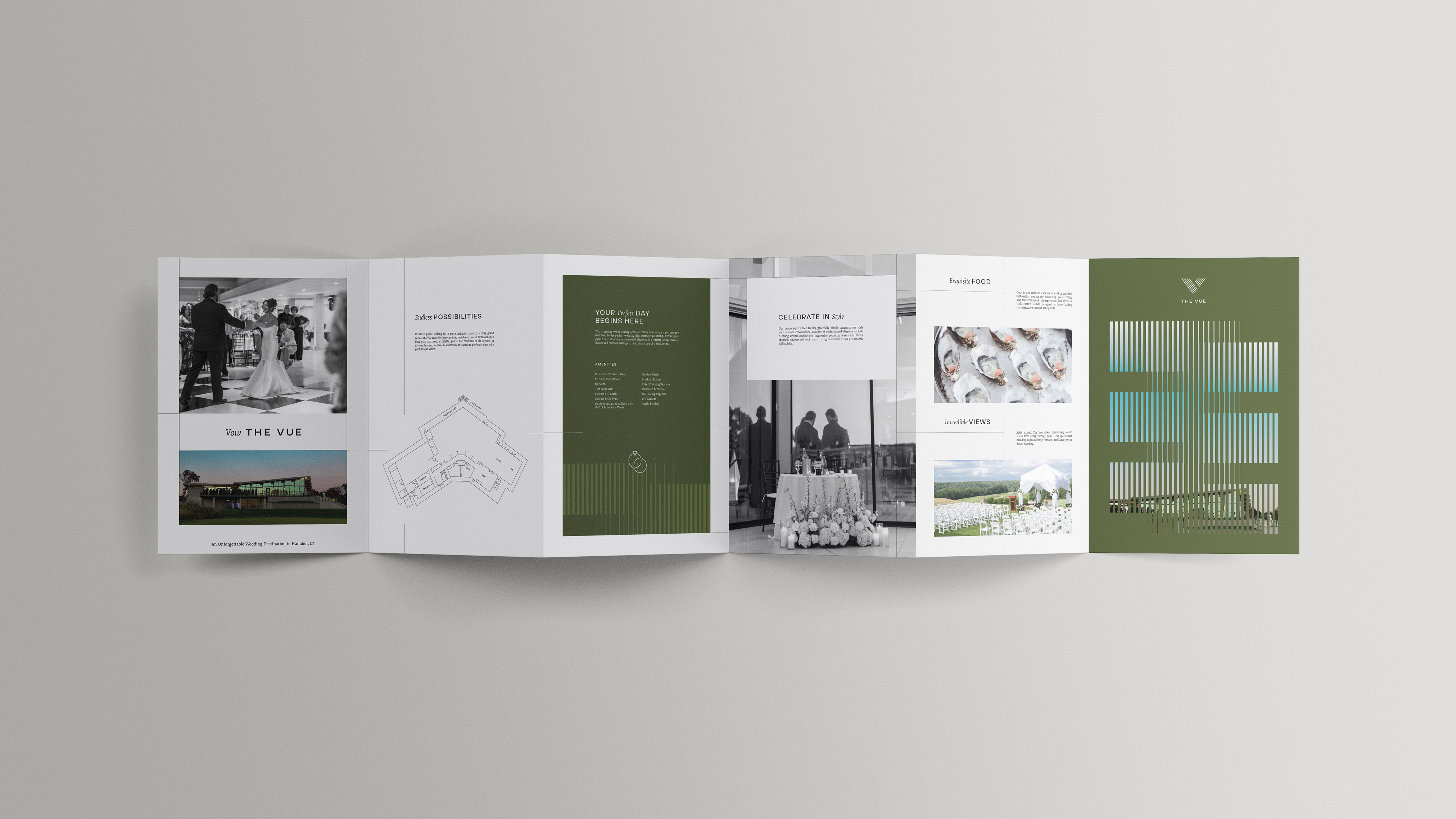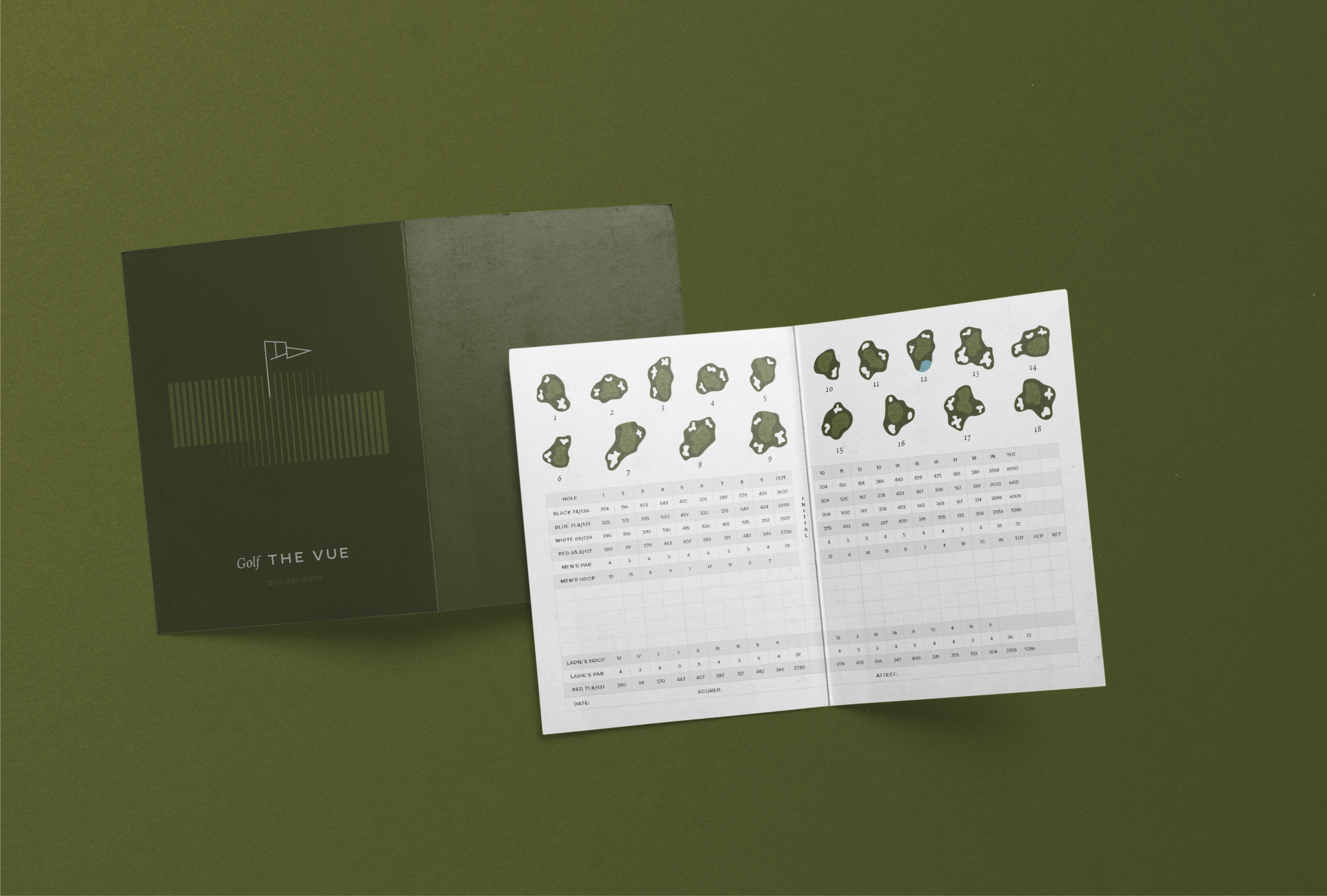 The Vue’s brand refresh was crafted with their most important feature in mind–the view. Between the linear and triangular architecture and the spectacular view of the golf course’s rolling hills, The Vue has a lot to showcase. So, we developed a structured, clean, and luxurious brand refresh parallel to The Vue’s company remodel.