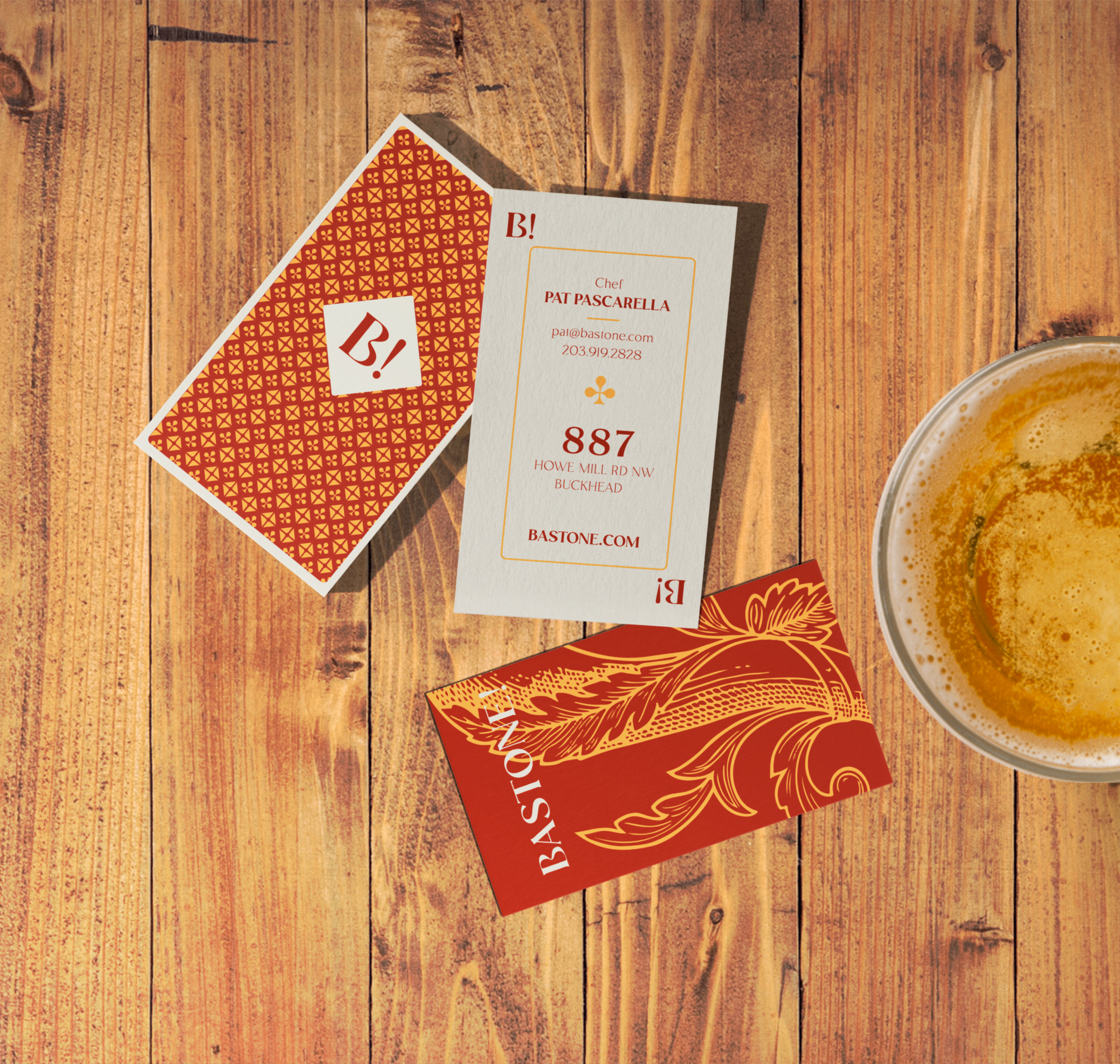 Owner and chef Pat Pascarella’s grandfather used to play cards with the family after every get together and and his favorite card was the ace of clubs: the “bastone”. He would slam it down on the table whenever he won “Il Bastone!” We combined the meticulous yet organic nature of hand-made pasta with classic Italian playing cards to create a visual system that feels inviting and familiar with a little edge.