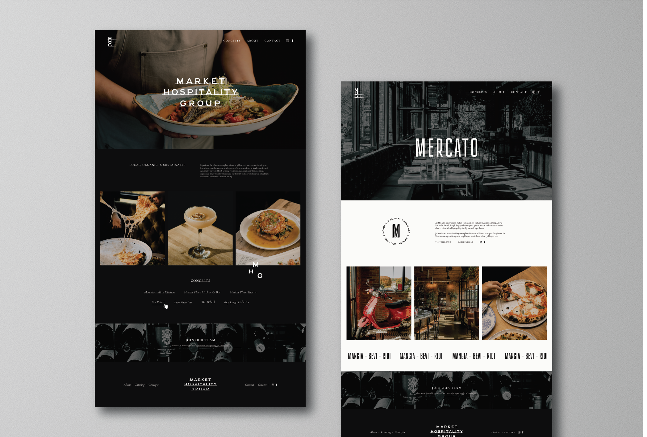 This contemporary rebrand of Market Hospitality Group encompasses the strides they’ve taken in the restaurant scene through multiple touchpoints. The purpose of this refresh was to elevate MHG’s identity to stronger align with their values and goals, while still remaining approachable to their current customer base.